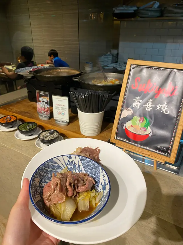 有鐵板燒和壽喜燒!最好吃就是這兩個😌