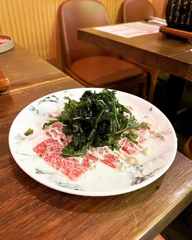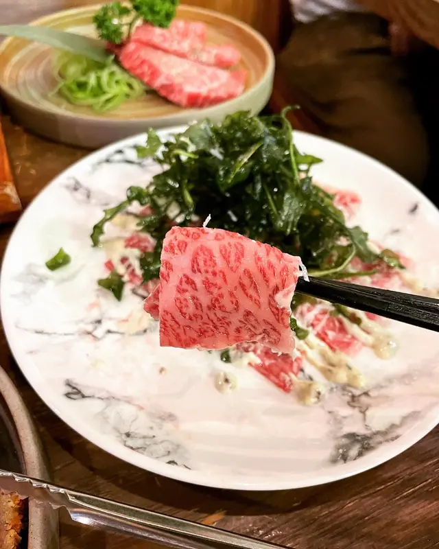 我地就叫左一份吉列牛舌,另外一份鹿兒島黑毛和牛定食,再加多個牛肉刺身Carpaccio