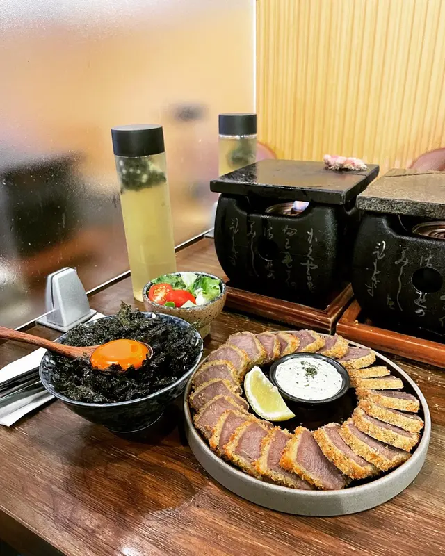 不得不提佢地跟餐唔係配白飯咁白單,而係紫菜月見飯!飯面有一隻生雞蛋自己撈,蛋香沾滿每一粒飯,加埋紫菜真係好有日本風味。
