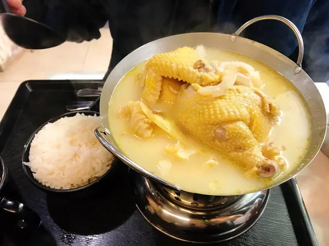 ✨花膠螺頭雞煲翅($68): 排隊果時見人帶住手套,拆緊隻雞真係好吸引勁想食🤤,隻雞超大有成半隻,d 肉仲幾嫩。 個湯既雞味都幾濃郁,不過味道偏甜,感覺唔係好天然,但男友就好鍾意。