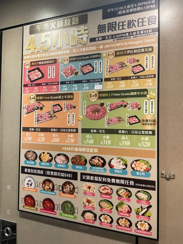 超抵食無限時火鍋放題 20款足料養生湯底任君選擇 eatwithfbj817Level 42025-03-21327 views Follow 呢排天氣凍凍地 最啱就係打邊爐😛食過幾次呢間「霸吃到飽台式養生火鍋」有成20款養生湯底揀而我哋最鐘意就係椰子雞湯🥥 清甜滋潤😋今次叫咗level 2 美國Prime Grade 牛肩胛肉 另外仲加咗$40 upgrade有埋海鮮有海蝦、帆立貝、花膠、花甲等等全部配料都非常新鮮呢度嘅火鍋放題真係好抵食除咗午市可以食夠4.5個鐘晚市仲可以升級無限時 .ᐟ.ᐟ啱曬一班朋友黎 唔洗趕住走( ॑˘ ॑* )2The above review is the personal opinion of a user which does not represent OpenRice's point of view.LikeShare超抵食無限時火鍋放題 20款足料養生湯底任君選擇 鍋霸吃到飽台式養生火鍋 (莊士倫敦廣場) https://s.openrice.com/QrKT0jmfR00Report Post Ratings4Taste4Decor4Service4Hygiene4ValueDining MethodDine In