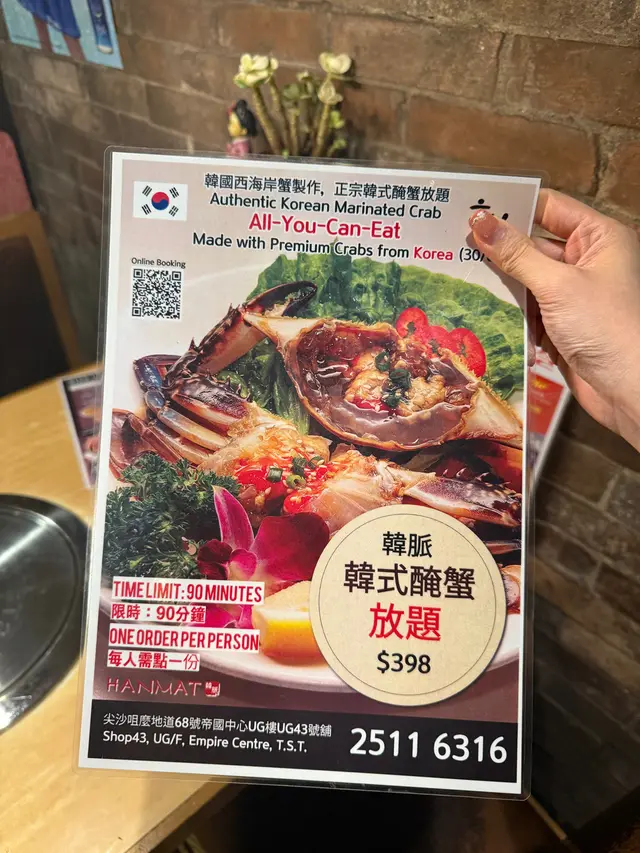 超抵食醬油蟹放題! claudia271318Level 42025-09-09257 views Follow 尖沙咀返工嘅同事推薦嘅韓國餐廳🍴真心好正!平日夜晚滿座 見到有人walk-in想waitlist都冇位好彩朋友有book位!老闆係韓國人🇰🇷周圍客人都聽到好多韓文😂我哋嗌咗醬油蟹放題!大大隻好多膏!最後我食咗5隻😋😋另外炸雞、炒年糕、海鮮煎餅同飲品都係任飲任食~見到隔離枱燒肉好似都好正!下次一定再嚟😋11The above review is the personal opinion of a user which does not represent OpenRice's point of view.LikeShare超抵食醬油蟹放題! 韓脈 (帝國中心) https://s.openrice.com/QrKT0qLDU00Report Post Ratings5Taste5Decor4Service4Hygiene5ValueDining MethodDine In