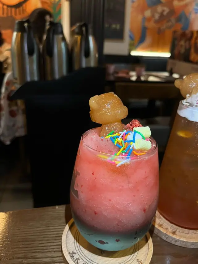還有棉花糖和sprinkles一同陪著熊仔~~但飲落又不會太甜~最欣賞就係果味的產品全部都不藥水!好飲!~中意沙冰質地的口感!