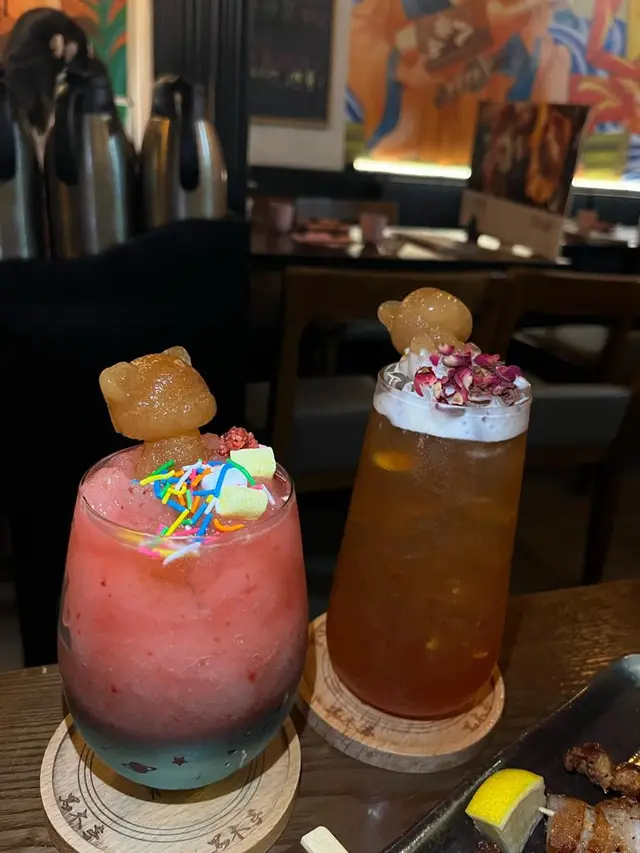 超可愛的熊茶,賣相一流之餘而味道都好好飲!蜜桃味不會太假太藥水,和烏龍茶搭配得幾好~飲落微甜又清新,和熱辣辣的串燒絕對係最佳拍檔!🐻