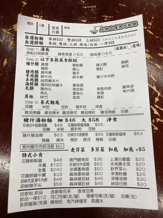 超正白胡椒湯底 NicNic WongLevel 32024-05-27889 views Follow 先不去深究這店的發源地是不是元朗,但這小店已開枝散葉,在香港及九龍多區也有分店。下午的lunch time 是這裡的勁繁忙時段,很欣賞幾個女士忙碌而有條不紊的為顧客安排座位。52看似不簡單的點菜紙其實很簡單,當是車仔麵般order 便可。我選了雙併、白胡椒湯、米粉。雙併的餸豬肚和豬粉腸,白胡椒湯都幾辣,邊食邊流汗,覺得其實天冷食會更合適!豬肚和粉腸爽彈,但因為切得幼細,份量就顯得多!香芹惹味,很滿足的一碗湯粉!The above review is the personal opinion of a user which does not represent OpenRice's point of view.LikeShare超正白胡椒湯底 元朗合隆潮州粉麵 (新文華中心) https://s.openrice.com/QrKT0KxLJ00Report Post Ratings5Taste5Decor5Service5Hygiene5ValueDate of Visit2024-05-27Waiting Time5 Minutes (Dine In)Type of MealLunch