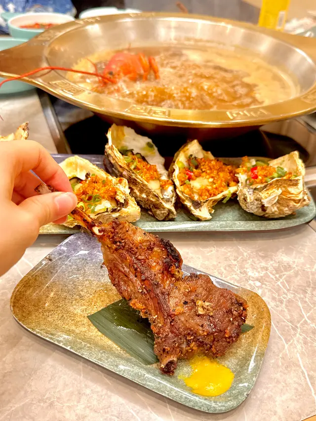 有大塊澳洲M5和牛,靚到淥2-5秒即可食用👍🏻另外多款一品料理,燒乳鴿外皮脆卜卜,鵝肝多士都幾肥美~推薦蒜蓉烤生蠔,大量金銀蒜超惹味🔥烤牛舌即叫即燒,又彈牙又嫩滑‼️