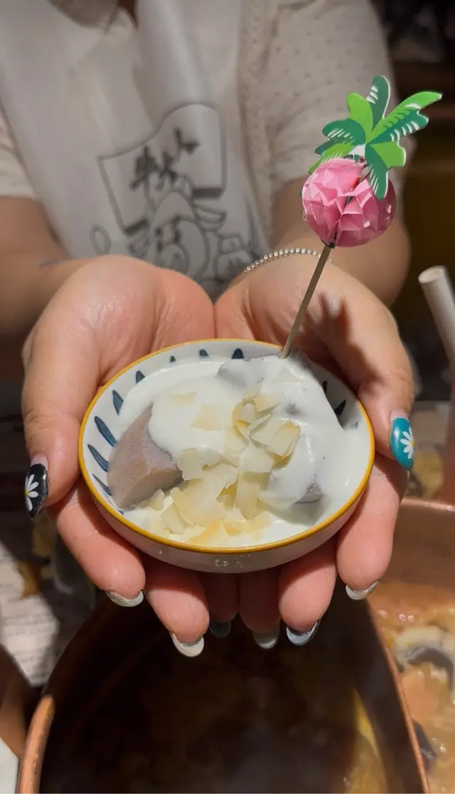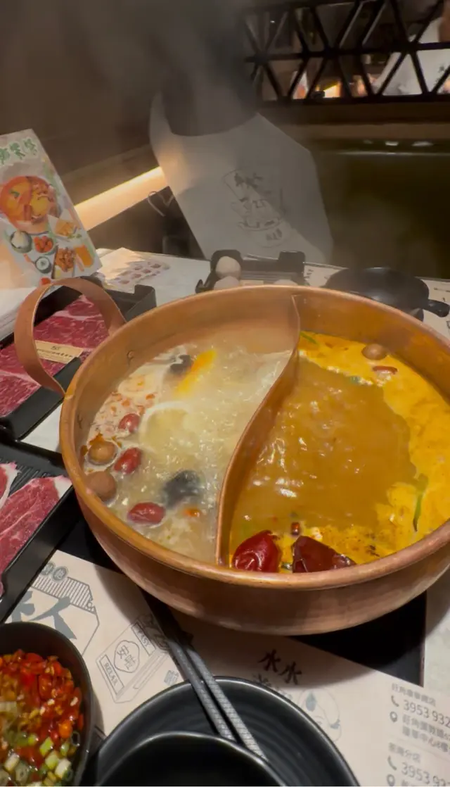 兩個一向都係椰子雞最愛,所以叫咗個鴛鴦湯底,一邊係椰子雞,另一邊係麻辣湯底🔥。椰子雞嗰邊個湯底真係好鮮甜!認真講,未打邊爐之前真係先飲一碗湯先🥣。