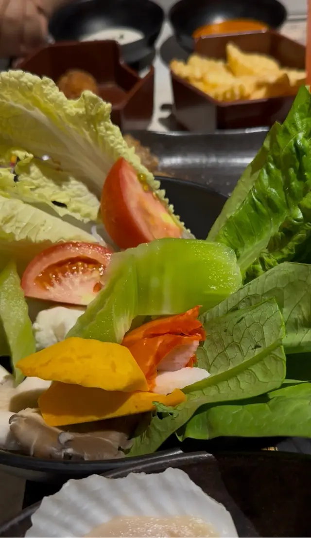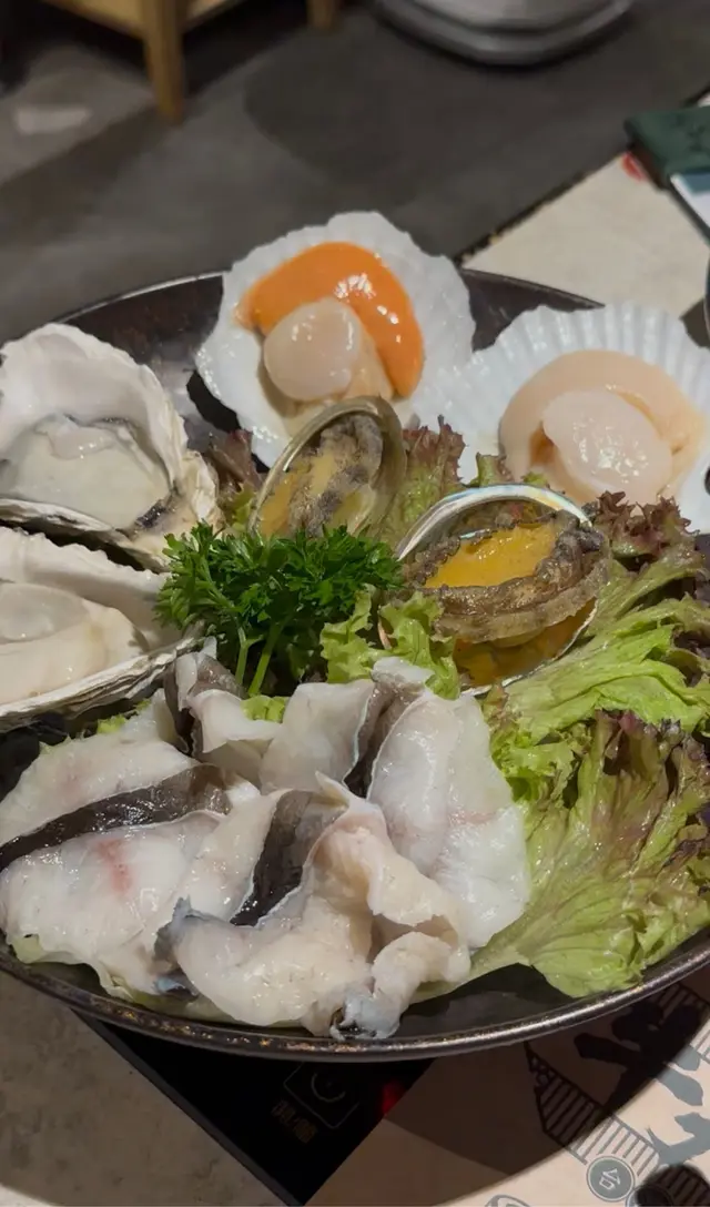 除咗牛肉,海鮮拼盤都係我哋今次用餐嘅一大亮點🐟。拼盤入面有任點鮑魚、生蠔同埋帶子,仲有脆肉鯇魚,每一樣都新鮮到不得了✨。特別係生蠔,口感滑潤,海味十足!仲有M9澳洲和牛牛丸,咬落去好彈牙!