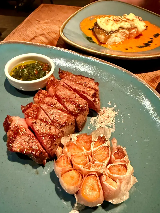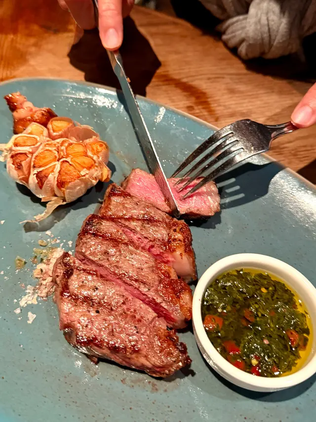 用上紐西蘭西冷牛扒,以炭火去燒,表面有炭火焦香,內裏保持肉汁,我地點了medium rare, 大廚燒得剛剛好,西冷牛扒肉味香濃,邊位有肥膏令牛扒更香,只簡單的醮鹽吃已經好好食😋