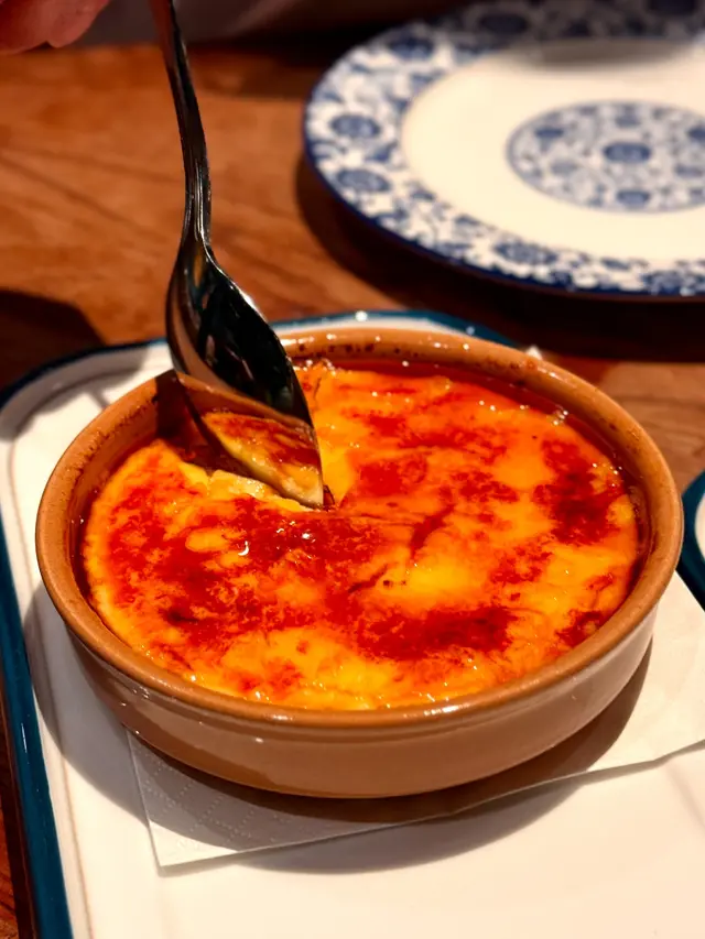 西班牙的經典甜品,類似crème brûlée,但加入柑橘皮和肉桂增添香氣,用上牛奶代替奶油,所以整體口感會較輕薄順滑,又唔會太甜及漏,店員即席加上點火製作焦糖脆面,更IG-able