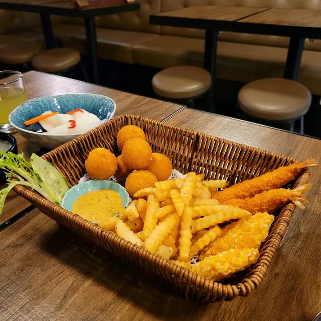 ❣️脆炸拼盤配黑松露醬: 鍾意食炸嘢嘅朋友一定要試吓呢個海鮮炸物拼盤,佢將啲海鮮炸到啱啱好,件件都金黃色,但又唔覺得特別油膩。而且原來薯條同黑松露醬係超級襯㗎。我同朋友另外點左紫薯丸($48),鬆脆嘅外殼包住爆滿嘅紫薯,煙煙韌韌,特別得來又好食