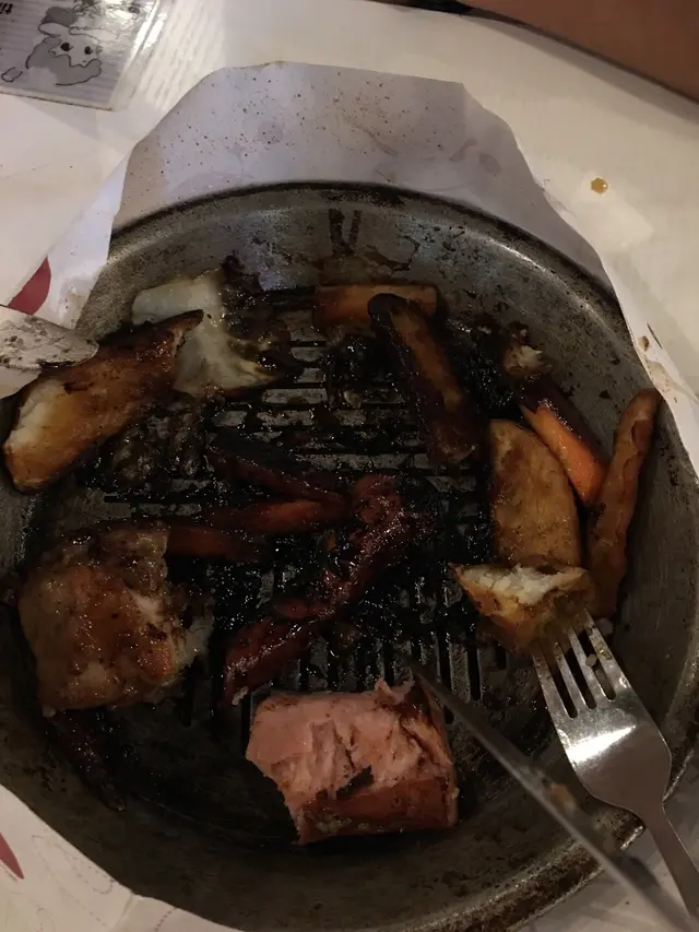 我哋兩個人只係叫一份雞扒司華力腸鐵板餐配薯菜照燒汁同一杯椰汁紫米冰,杯嘢嚟到勁淡,啲冰仲多過啲紫米,都算... 個鐵板餐等咗我差不多半個鐘,中間仲要追咗兩次... 嚟到之後明明叫咗燒汁又冇俾,成張枱仲要冇义,我男朋友走去問個侍應:「唔該,我冇义用.. 」條友似開玩笑但態度好寸咁答:「我知我廢!」就咁行開咗,之後問佢拎返照燒汁態度仲要更差!到食落去嗰下仲嬲,啲嘢食嚟到樣樣有一大半都燶!點樣食呀??好快食完呢啲咁嘅嘢連甜品都唔想叫...