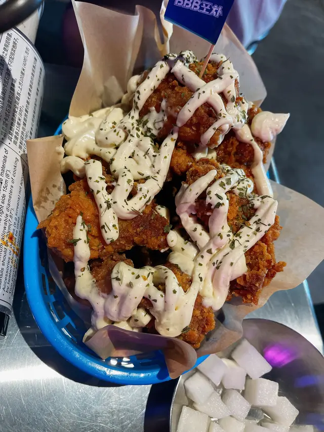 酸忌廉炸雞,都OK嘅啲雞好大舊,不過都係得表面嗰層有味,舊雞好似冇醃過咁,但係完全同韓式唔能夠拉上關係,比較似西式嘅炸雞食緊KFC,不過叫做好食過KFC
