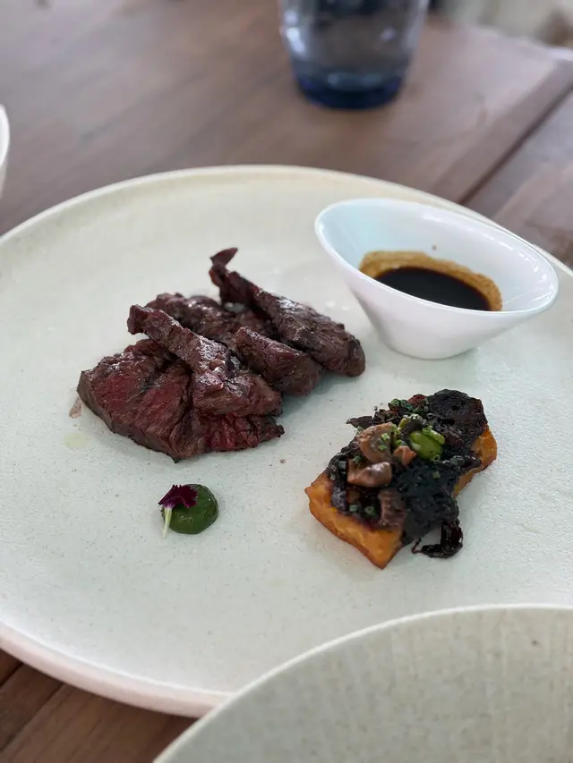 ✨M7和牛後腰脊肉(+$120) 以羊肚菌、焦糖洋蔥、牛肉汁作調味,很香