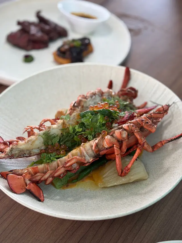 ✨烤原隻波士頓龍蝦(+$220) 超大一隻的龍蝦非常鮮甜,調味使用西京味噌、辣椒、海帶,還有salmon roe, 很不錯👍🏻