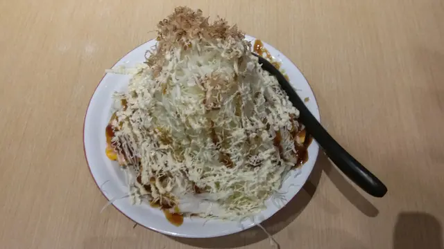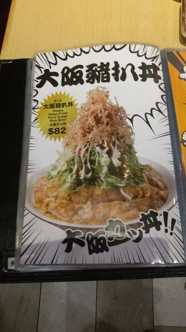 這豬扒丼送上時,有點驚嚇,誤會以為什麼東東? 表面出切幼椰菜絲堆座成雪山,周邊加上醬汁洋葱絲,尖頂佈滿木鱼片,內隱藏著蛋/吉列豬扒件,肉質軟嫩滑帶流出肉汁,還有珍珠飯包底,份量十分足夠