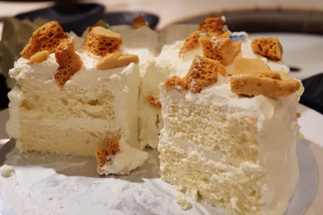 超鬆軟輕盈的脆焦糖蛋糕 EAT hard PLAY hardLevel 42014-08-032K views Follow 早前的燒肉夜,我們來到尾聲給了壽星’仔’一個surprise,齊齊切生日蛋糕。這個蛋糕就是來自May's cookies的招牌蛋糕之一Crunch cake脆焦糖蛋糕 。1這款蛋糕就其實我一直都有興趣吃,只不過每次去到May’s Cookies都最後選了我好喜歡的斑蘭椰青蛋糕,終於這夜可以一吃了! 1超鬆軟的海綿蛋糕外層是白雪雪的淡fresh cream。脆焦糖粒是另外包裝的,仍保持非常鬆脆。大家食之前可以隨意加上自己喜歡的份量。1這超鬆軟、輕盈的脆焦糖蛋糕,焦糖粒脆卜卜又香,而且蛋糕的甜度很輕,很合我口味,真是吃得很滿足呢~ 在此亦再祝壽星‘仔’食友生日願望成真! :) 1The above review is the personal opinion of a user which does not represent OpenRice's point of view.1Share超鬆軟輕盈的脆焦糖蛋糕 MAY姐曲奇 https://s.openrice.com/QrKT0Xbaa00Report Post Ratings5Taste4Decor4Service4Hygiene4ValueDining MethodTakeAwaySpending Per Head$80 (Last Night Supper)