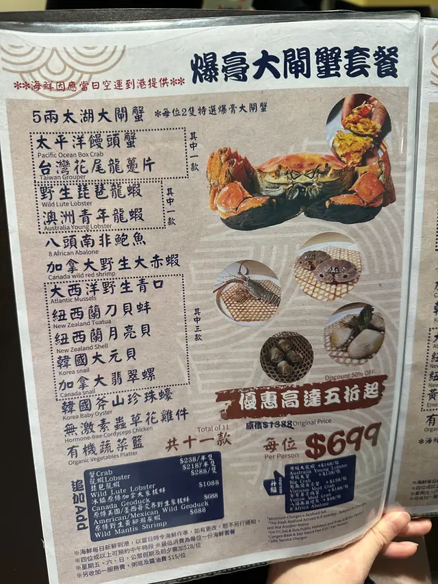 適逢係食大閘蟹嘅季節,唔係好中意太多蟹膏嘅我,揀咗間蒸海鮮過下口隱🦞 我同朋友叫咗個尊貴海鮮套餐 5.5折優惠價 $449 /位 超值足足十款食物加埋個海鮮栗米豬骨粥底,超滿足‼️
