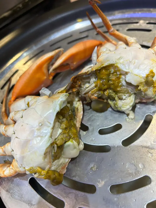 來到重頭戲的琵琶龍蝦和膏蟹。 龍蝦蝦肉呈嫩粉紅,用叉子一吉,整條脫殼而出,可見新鮮程度。鮮嫩的蝦肉帶點蝦膏,令人忍不住想再吃一隻。 膏蟹大大隻,切開後蟹膏滿溢,膏香濃郁。