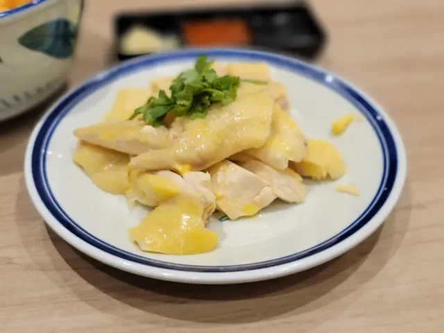 這碗是朋友點選的,其麵底爲純米粉,配料則包含有豆腐卜和額外奉上的海南雞,並提供有三款醬汁可供沾點,我小嚐了數塊雞肉,口感濕潤嫩滑,且富有雞味,而其餘沒有品嚐就不作評論了。