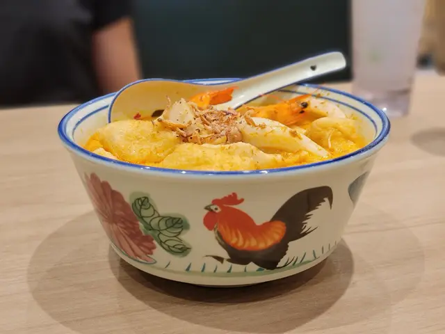 招牌叻沙是餐廳的主打款式,特意選用上六七十年代的公雞碗盛裝奉上,令賣相顯得懷舊且富有特色。鮮橙的叻沙湯底稠密濃厚,咖哩醬和椰奶味道恰當開胃,可嚐出貨真價實。而麵底滲滲就是把米粉混合油麵,目的是用以增加口感同時亦可以盡吸湯汁,咀嚼時煙韌彈牙,順滑入味。配料方面則用上爽口鮮甜的蝦隻、軟滑鮮美的蟹棒、香口結實的魚片頭、滑嫩新鮮的魷魚圈、和軟腍入味的豆卜,其豐富的用料讓整碗叻沙更是層次十足。