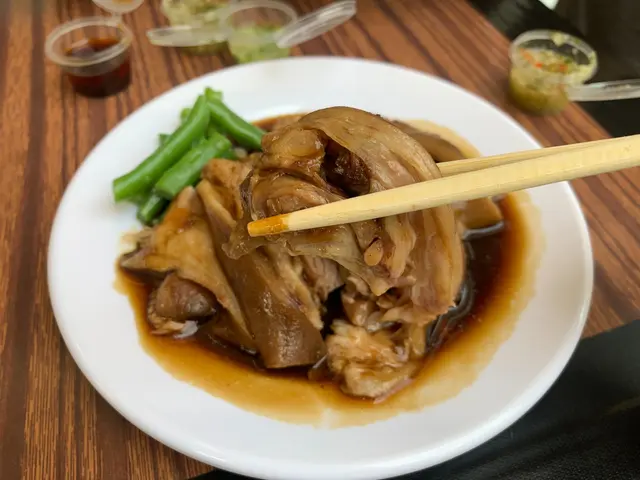 鹵水味濃郁,帶甜,元蹄肉嫩軟,炆到個皮好軟糯好黏,好入味。而且意想不到既大份。