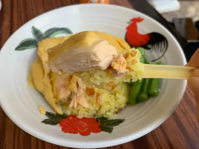 雞肉滑嫩,重點係雞皮爽,每件既肉及皮都相連,唔會散開。配埋薑蔥蓉/泰式醬料更惹味。