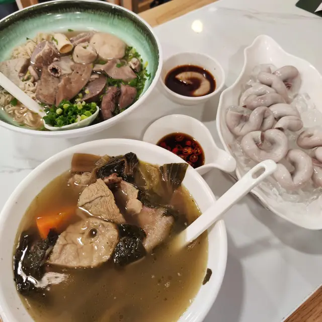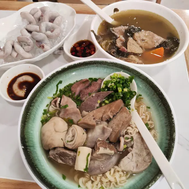 食物推介:足料豬什皇加辣胡椒湯公仔麵 $55,冰鎮豬生腸 $56,菜乾豬肺蝴蝶腩湯 $36