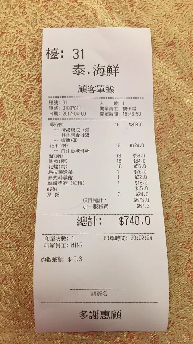 我哋本身係關財記嗰邊買了五款海鮮已經600多元,再加埋這裏的加工費,這一餐已經吃了1300多元了