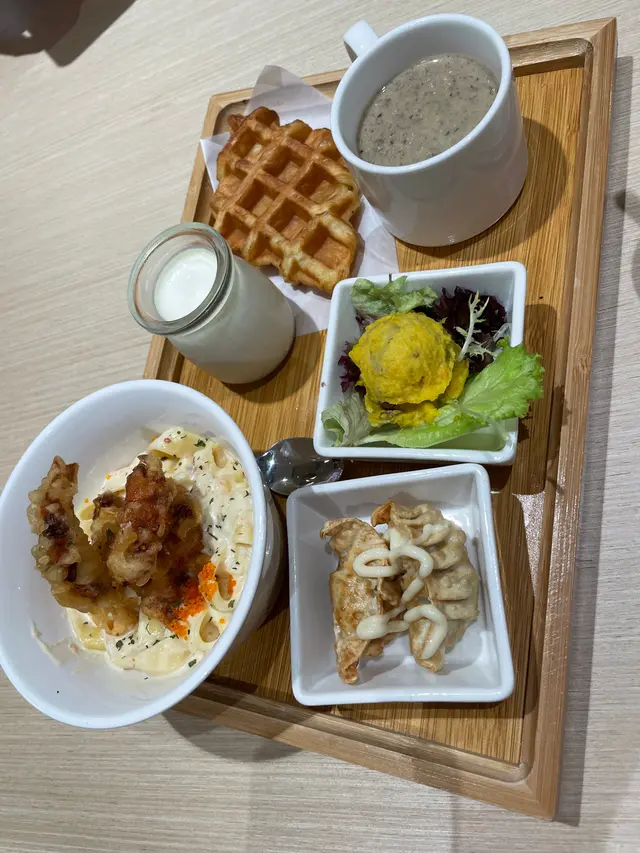 輕食推介 wendypmlawLevel 32023-03-04342 views Follow 兩個family(三個小朋友)行行吓街想輕食跟住就黎左呢間餐廳試吓我就要咗杯芝麻奶昔我同我仔都好鍾意飲因為真係好濃郁芝麻味上面嘅cream又唔係太甜組合得啱啱好👍👍👍朋友都讚佢杯綠茶咖啡好正個pizza 都好驚喜叫咗章魚小丸子味Pizza 上面有少量八爪魚不過佢嗰醬真係好似章魚小丸子完全好似食緊小丸子咁好得意個皮都好薄好脆食得開心👍個拼盤軟殼蟹都係好好食黃色嗰個以為係南瓜點知佢係甜番薯感覺好食得來又健康👍1The above review is the personal opinion of a user which does not represent OpenRice's point of view.LikeShare輕食推介 cafe ToGather https://s.openrice.com/QrKT0e3r800Report Post Ratings5Taste5Decor4Service4Hygiene3ValueDining MethodDine In