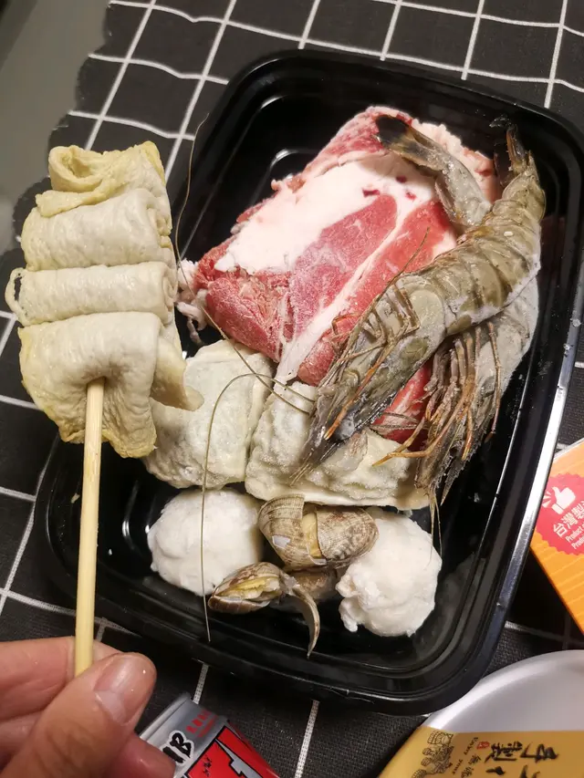 天氣咁凍,有邊爐套餐,買返個今晚即打先,昆布湯底、肥牛、大蝦、蜆、餃子、丸、烏冬同大魚串,方便又好食。