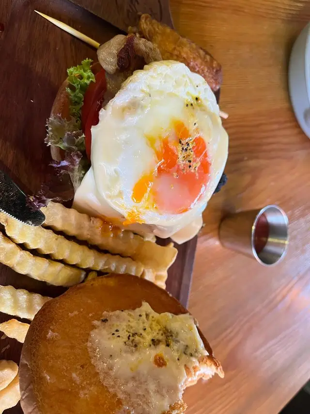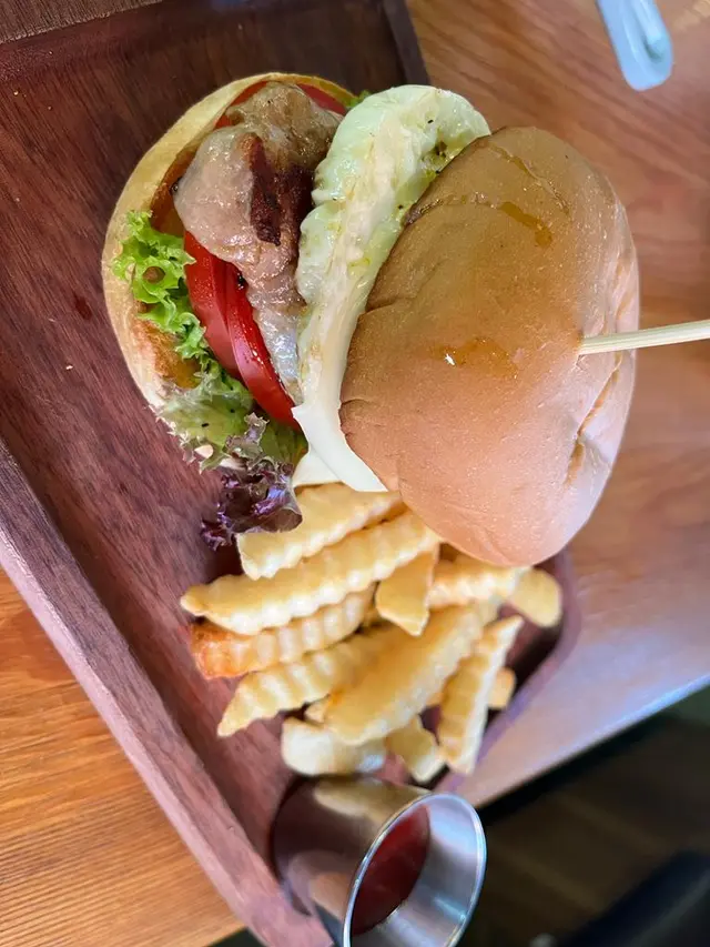我叫左lunch menu P 北海檸檬黑豚豬柳太陽漢堡配薯條,薯條炸得好香 有茄汁。漢堡包的包係軟熟熱既,太陽蛋半生熟 合格咁啦。豬柳就一塊仔咁,佢夠熱切得開,但就好煙韌,唔知係咪黑豚豬的特色呢