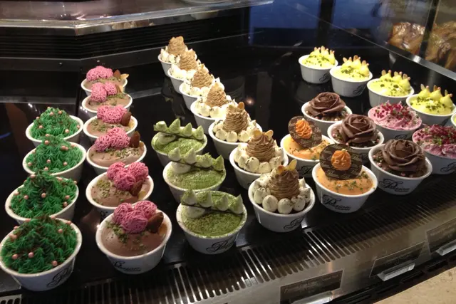 雖然上面的忌廉雕畫得很細緻,但從它鮮豔的綠色,看得出人工色素肯定下得不少 :( 。