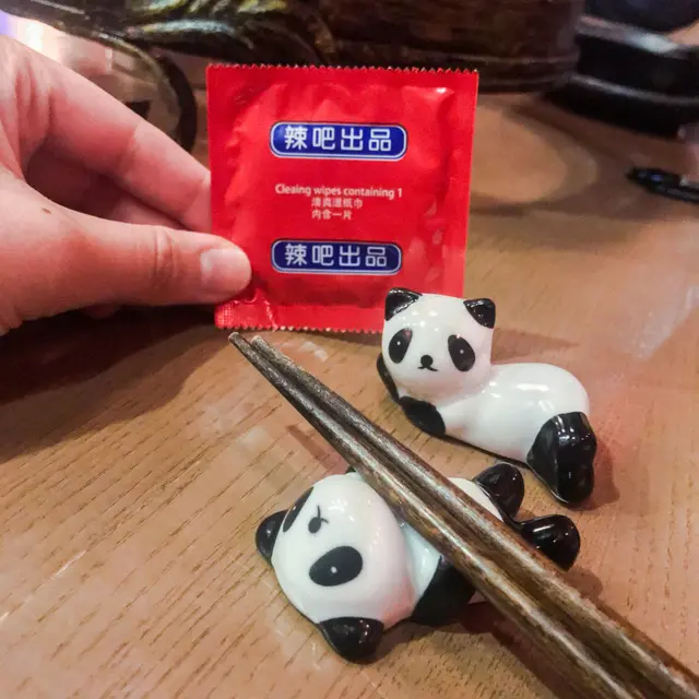 而且明顯滲岀既係一種調皮感一坐低完全比枱面呢隻小熊貓筷子托吸引住,非常QQ既小熊貓真夠吸睛,此時視線也移到附近既避孕套設計既濕紙巾,感覺莫明奇妙,但又感到幾風趣,夠晒Crossover。💖