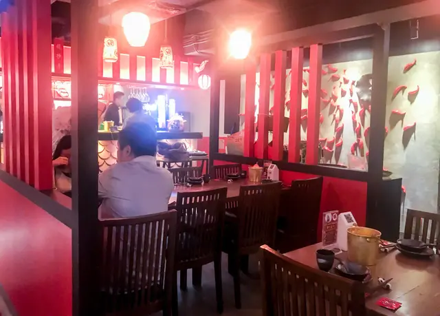 店鋪空間十分大,環境真係川菜餐廳咁但又見到Crossover左酒吧...難怪叫【辣吧】餐廳既主題看似中國風因為裝潢以紅黑色為主,又有特色酒鍋形狀的燈飾。環境感覺舒適。