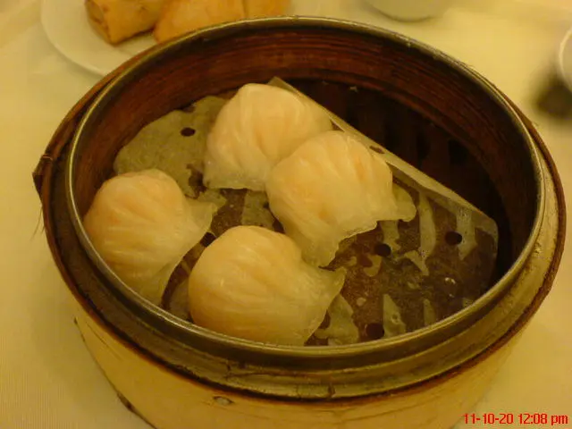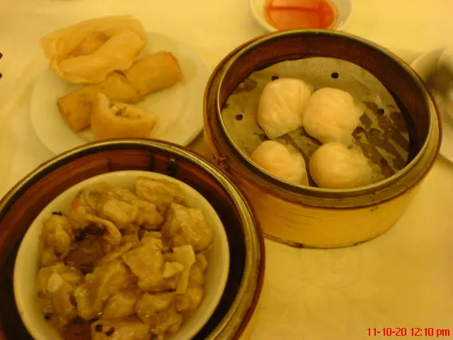 蝦餃, 炸3樣, 排骨, 西米布甸..... 味道係' 唔知幾時出爐, 而焗左係點心車保溫, 係點心(龍)內焗出一身汗'