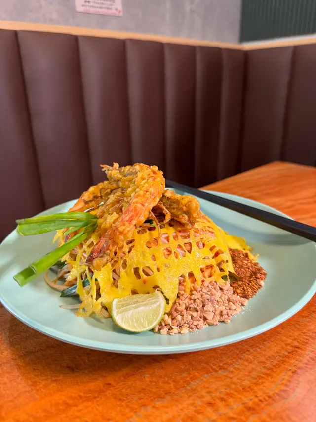 金邊粉炒得夠乾身,羅望子汁醬既甜,青檸既酸同魚露既鹹,令金邊粉味道無咁單一。虎蝦大隻,蝦肉爽彈,可惜得一隻。