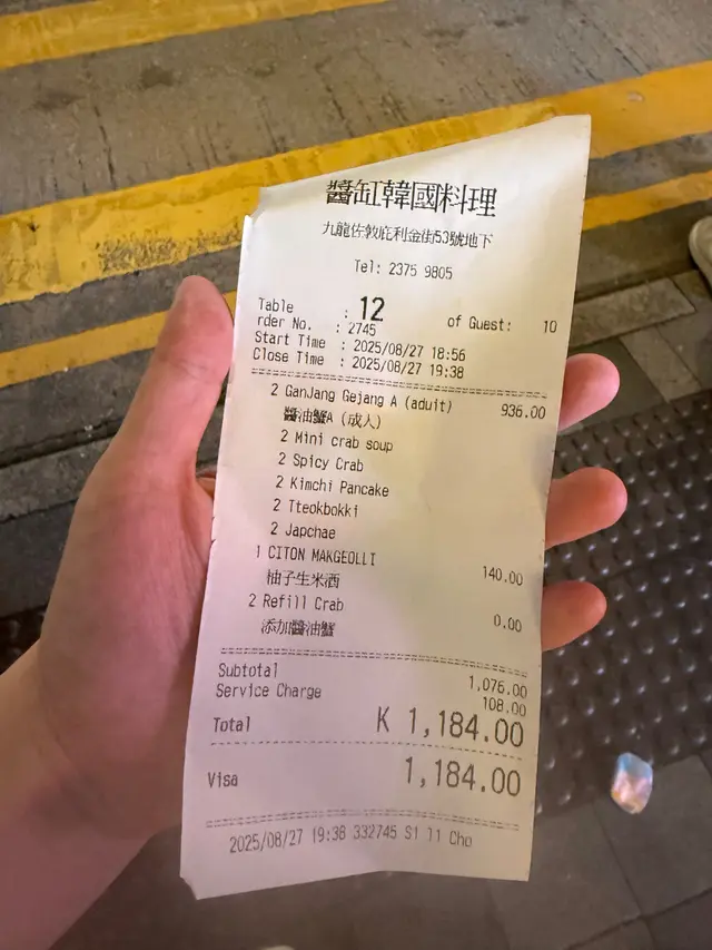 ✅ 包醬油蟹、蟹湯、辣醬蟹、泡菜餅、炒年糕、炒粉絲(全部任 refill 🤯)