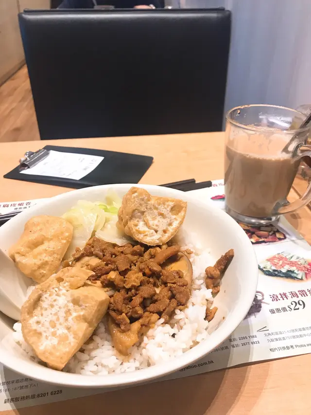 這個伏不簡單 爆炸男Level 42019-09-21191 views Follow 剛巧下午茶時段經過第一城,揀咗間有下午茶又唔係貴嘅餐廳,台灣麵都好多分店但係就一間未試過所以就試吓去啲台灣菜。下午茶都好多選擇而且價錢唔貴,揀咗個豆卜滷肉飯,要有杯熱椰子台式奶茶,表面上呢個價錢都算係抵因為又有滷肉飯又有台式嘢飲。奶茶先到,係好重人工椰子味,奶茶其實就唔係好feel到,好淡淡然。豆卜滷肉飯個豆卜係炸出來的,好有煎釀四寶風味,滷肉好瘦,好鞋,小小鹹味,白飯好林,成個配搭係食得好辛苦, 最後一半都食唔晒。基本上我覺得依個係港式滷肉飯加煎釀三寶。30幾蚊唔係貴但個質素真係一個伏。The above review is the personal opinion of a user which does not represent OpenRice's point of view.LikeShare這個伏不簡單 台灣麵 https://s.openrice.com/QrKT0X1Ss00Report Post Ratings1Taste3Decor3Service3Hygiene2ValueDining MethodDine In