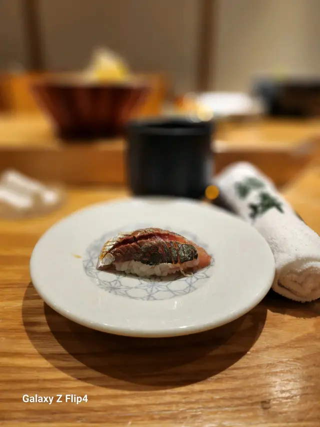 炙燒梭子魚肉質鮮美柔嫩,魚皮炙燒過後油香更突出