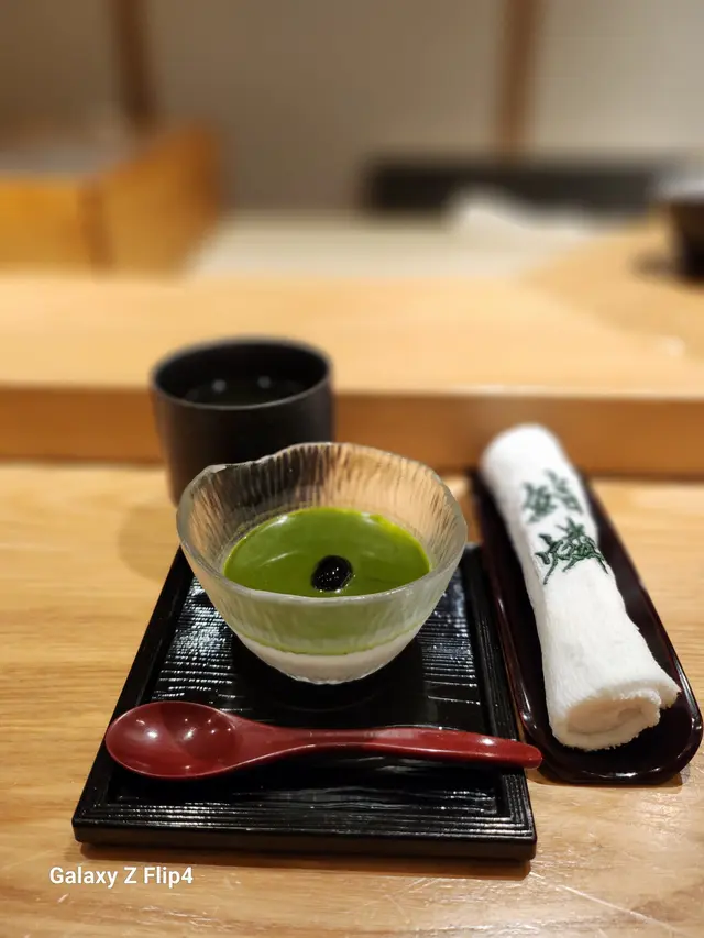 日本枝豆口感粉糯帶甜味;西京芥末籽粒貝配青瓜味道爽口清甜;日本北海道粟米蓉香甜配搭馬糞海膽及鰹魚湯啫喱,口感及味道都豐富