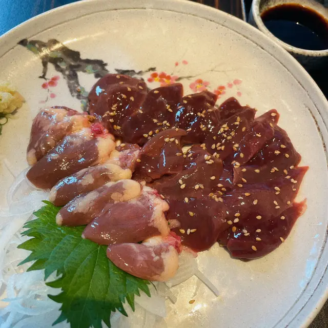 第一次試雞內臟刺身,入口即化嘅感覺真係特別✨雞肝滑溜帶少少粉感,心臟則爽口彈牙,配上薑蓉醬油更添鮮味~
