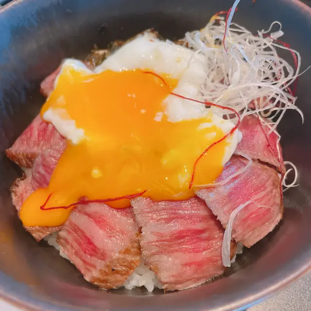 和牛油脂分佈均勻,煎得剛剛好🔥肉質軟嫩多汁,搭配合桃玉子製嘅溫泉蛋,拌住飯食簡直一流💯
