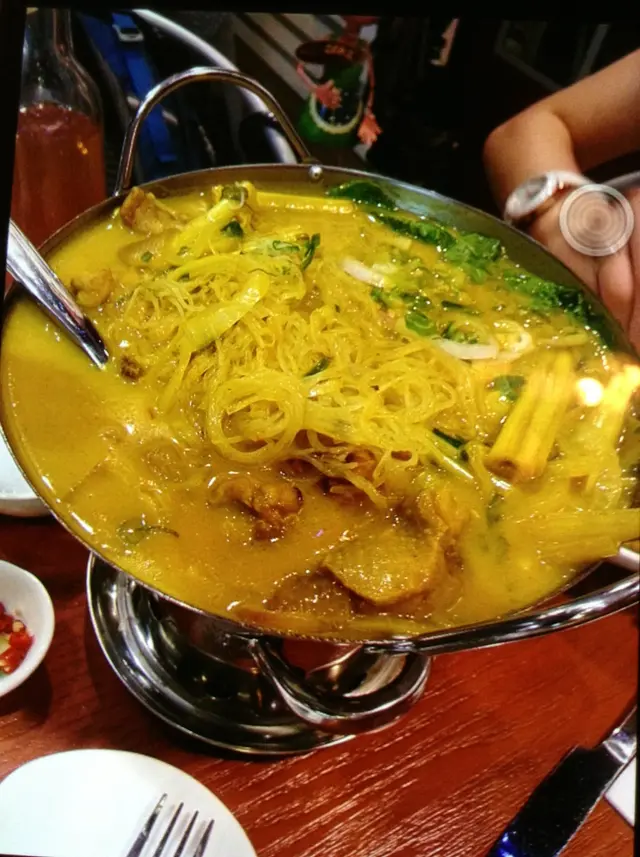 椰汁酸湯粉絲鍋配咖哩雞+蒜蓉包:酸味好夠,好醒胃。但成個鍋比D咖哩雞整到變左咖哩鍋。