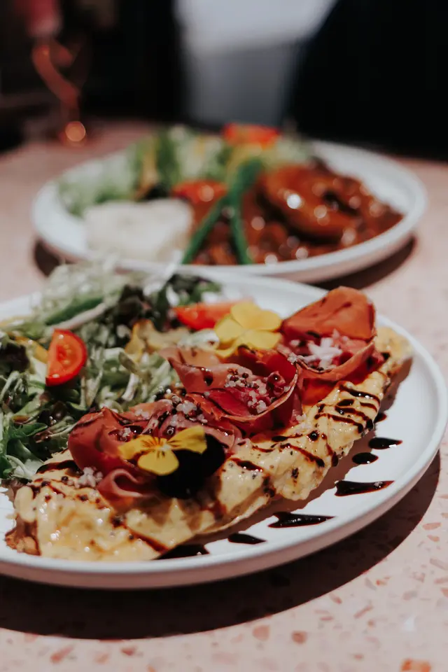 搭上鹹香巴馬火腿、軟滑黑松露炒蛋及藜麥