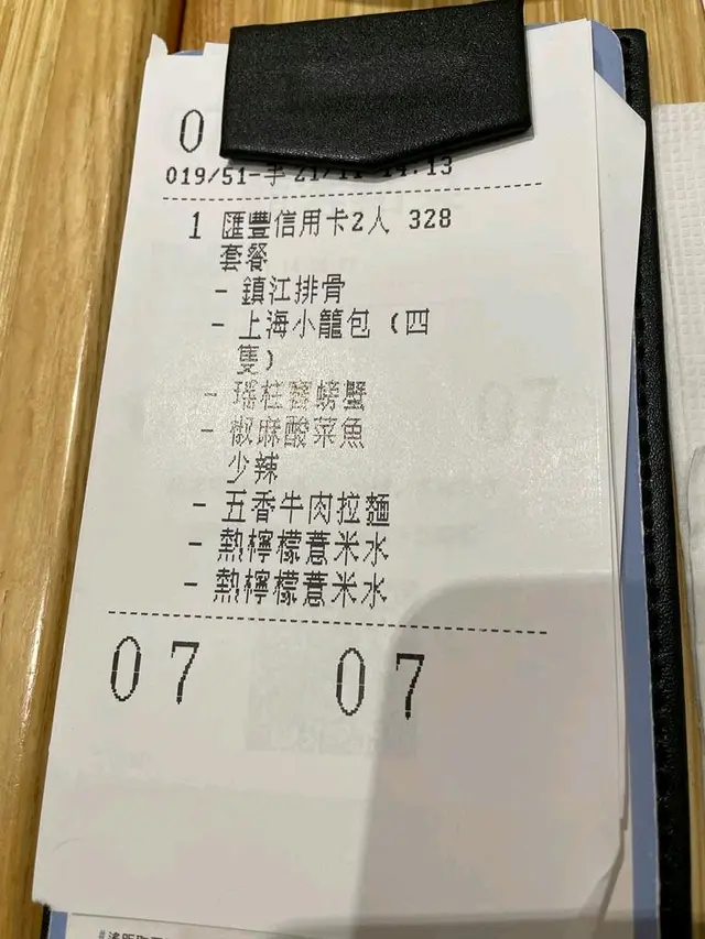 揀咗個滙豐優惠的二人餐,居然夠我哋三人食,套餐包一款前菜,一款點心,二款小菜,一款主食,二杯飲品。揀咗鎮江排骨,上海小籠包,賽螃蟹,椒麻酸菜魚,五香牛肉麵,二杯熱檸檬薏米水,最先上枱係上海小籠包,因為肚餓,好快ko 咗,馬上加多一客,真心的,小籠包湯汁豐富,爆汁,味道洽到好處,值得加單👍🏻,接着端來牛肉麵,麵質爽彈,牛肉是牛肉,夠淋,味道比較清淡,而賽螃蟹,煮得剛好,不膩,不腥。鎮江骨同我喺其他店吔嘅,有啲分別,呢度比較汁多,外面較乾,最後那碗酸菜魚,配上薯粉條,薯粉吸收了酸汁,簡直絕配,我哋揀咗細辣,所以唔太辣,唔咸,啱我口味。飲品一般般,亦偏淡。整體而言,都算係值得選擇的一家食店。