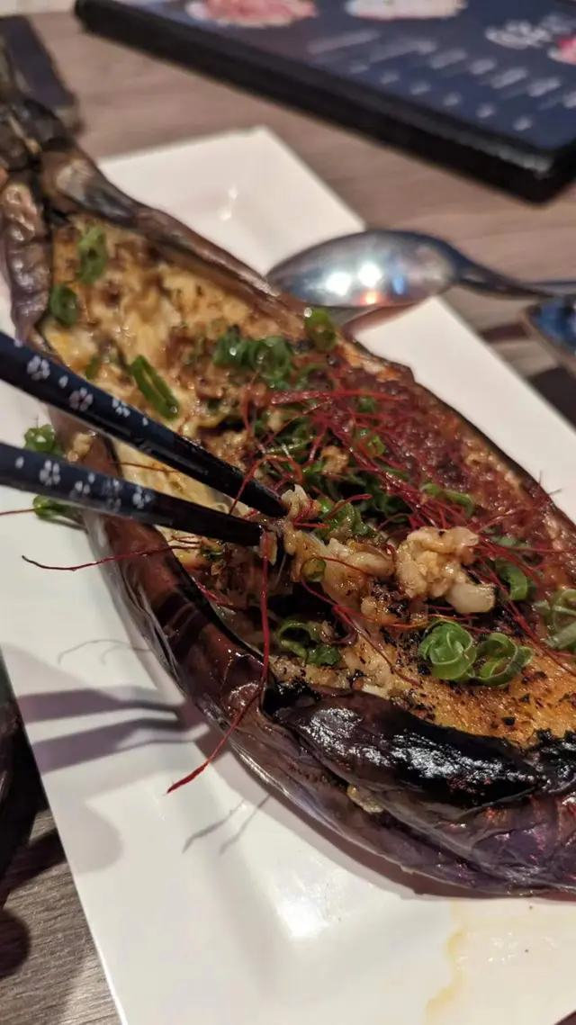 茄子經燒烤後香氣四溢,味道濃郁,蒜蓉的加入更為料理添上一層風味,每一口都是香脆又帶有淡淡的蒜香。