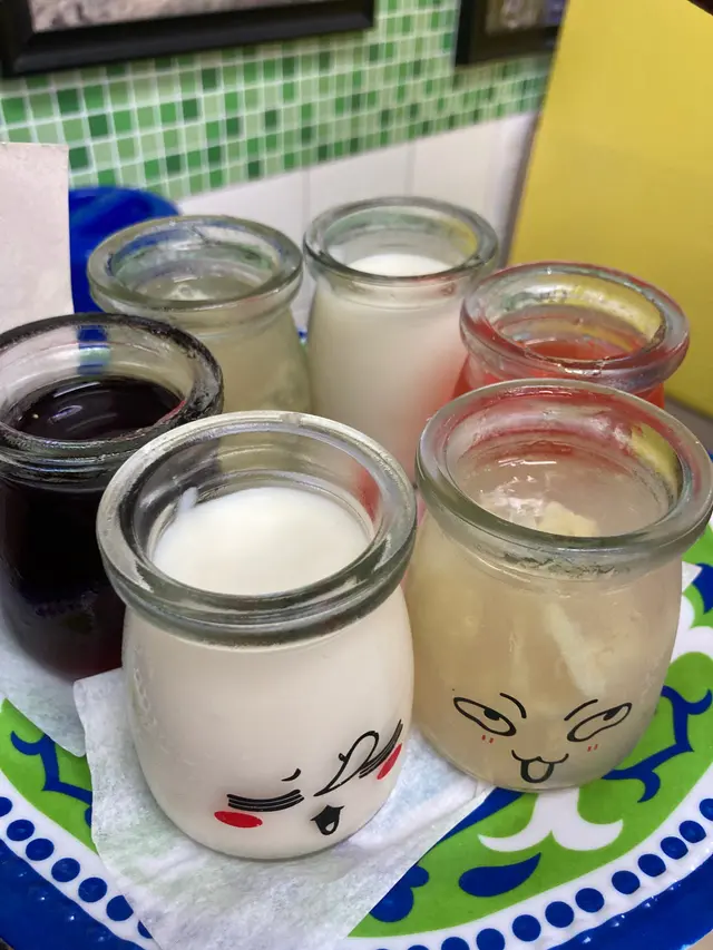 6個小玻璃瓶裝著三款甜品,包括 大菜糕、啫喱 同埋杏仁豆腐。食曬D熱食後,一口氣食埋D 甜品 真係會覺得大滿足!