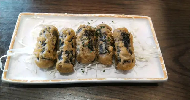 炸紫菜卷岩岩炸起熱辣辣,裡面係粉絲,外面脆裡面有趙口,口感幾特別👍