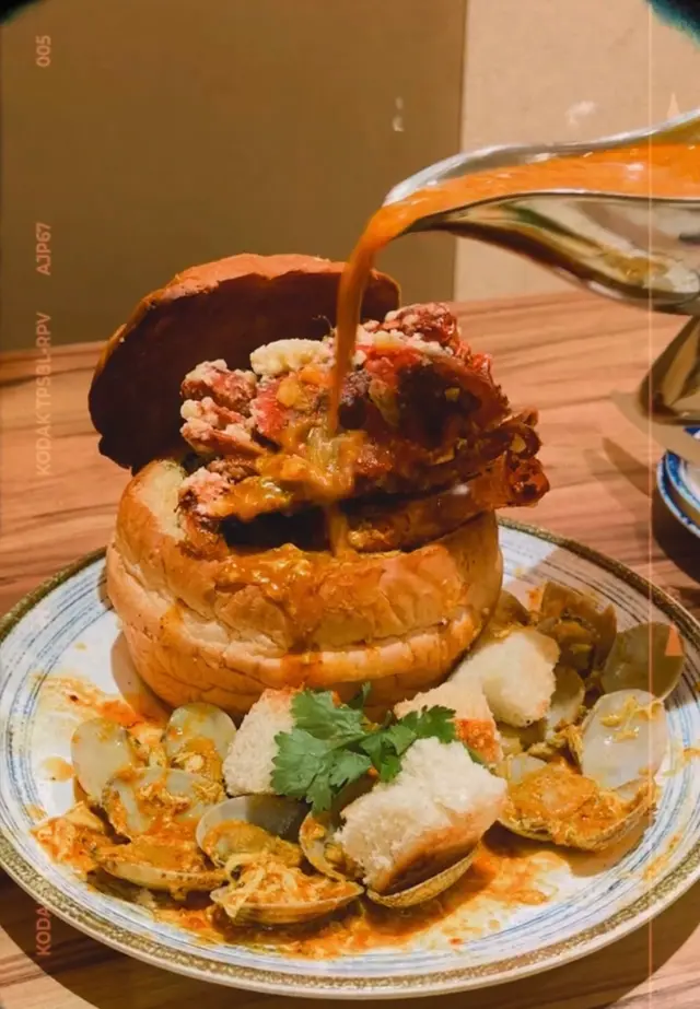 大大個超足料!佢除左有軟殼蟹外,亦有啲蝦、蜆等 好豐富✨